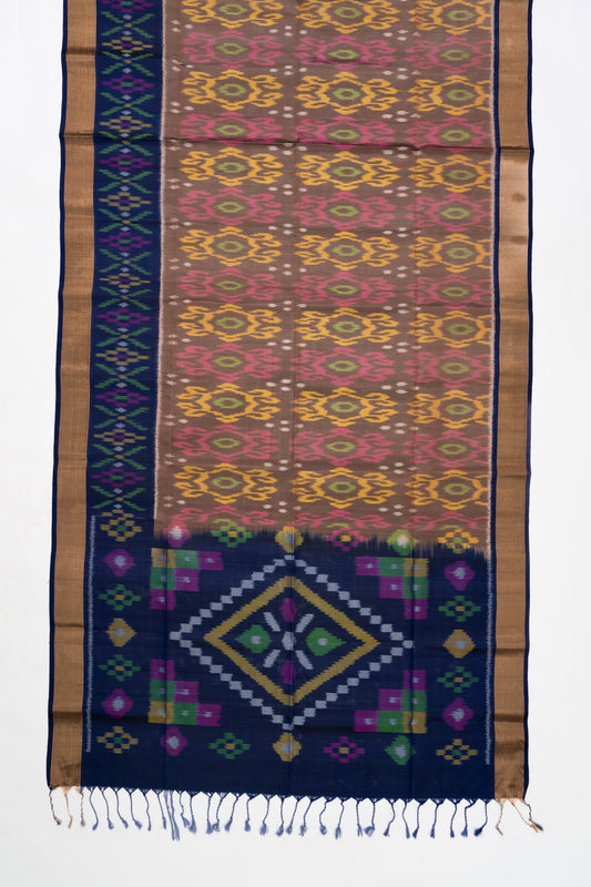 Brick Brown & Blue Ikat Soft Silk Saree