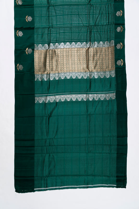 Bottle Green & Yellow Checks Arani Pattu Silk Saree