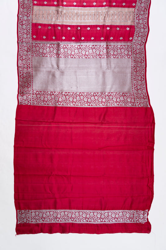 Bright Red & Purple Jaal Chiniya Silk Saree