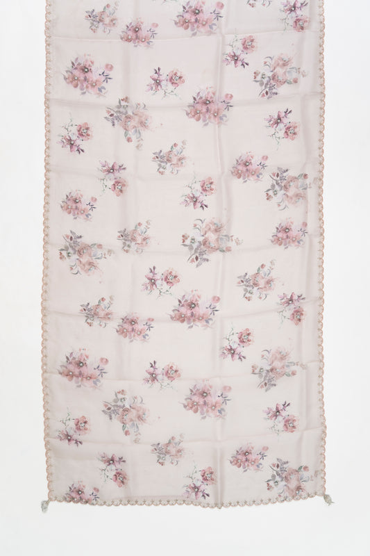 Sold outBaby Pink Printed Organza Saree
