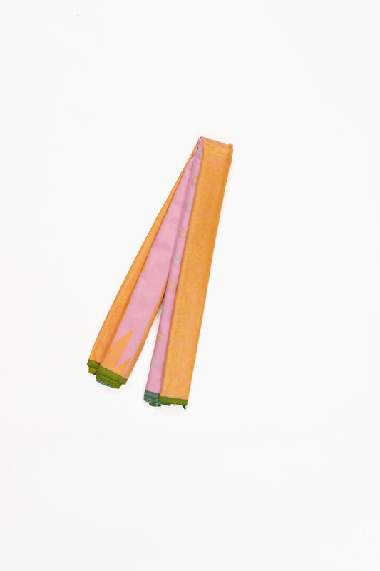 Baby Pink & Yellow Gadwal Pattu Silk Saree With Temple Border