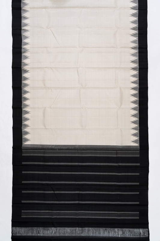 Black & White Stripes Arani Pattu Silk Saree