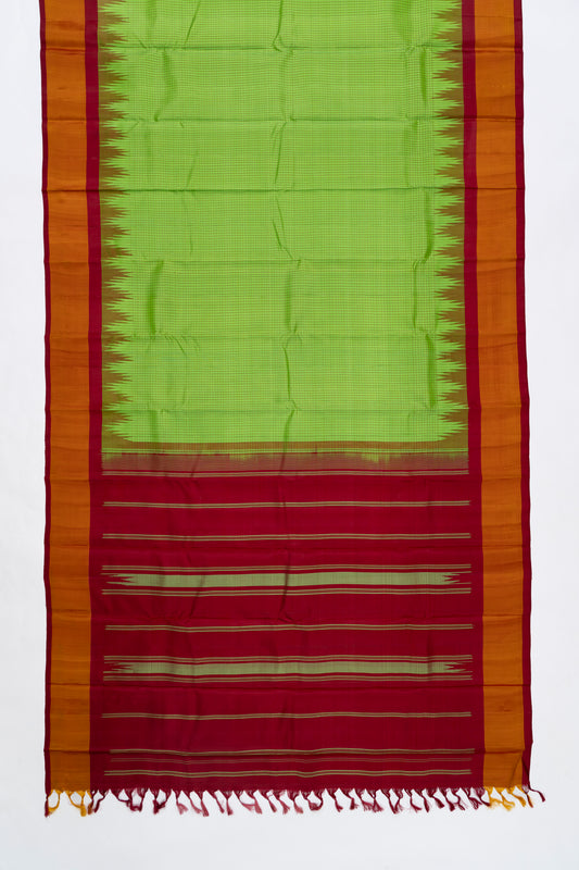 Lime Green Checks Arani Pattu Silk Saree