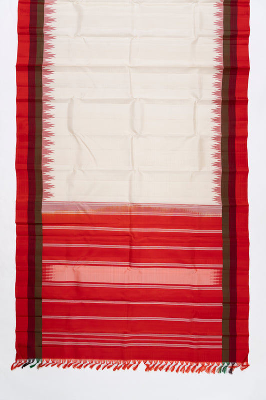 White & Red Plain Arani Pattu Silk Saree