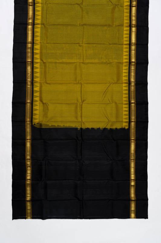 Yellow & Black Checks Arani Pattu Silk Saree