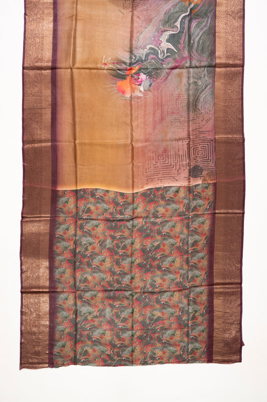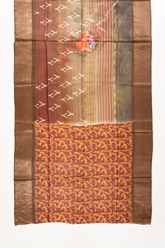 Brown Multicolour Printed Bhagalpur Silk Saree