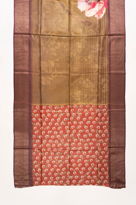 Coffee Brown Multicolour Printed Bhagalpur Silk Saree