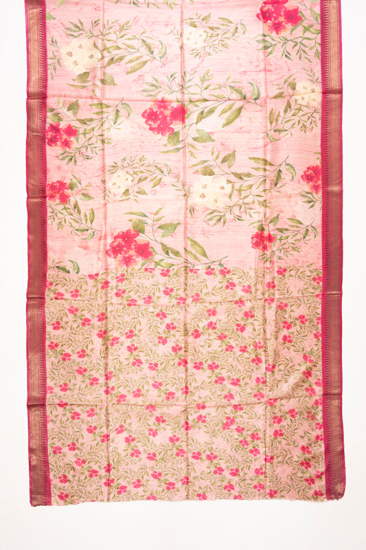 Peach Pink Floral Printed Bhagalpur Silk Saree
