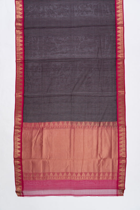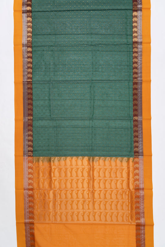 Bottle Green & Yellow Checks Arani Pattu Silk Saree