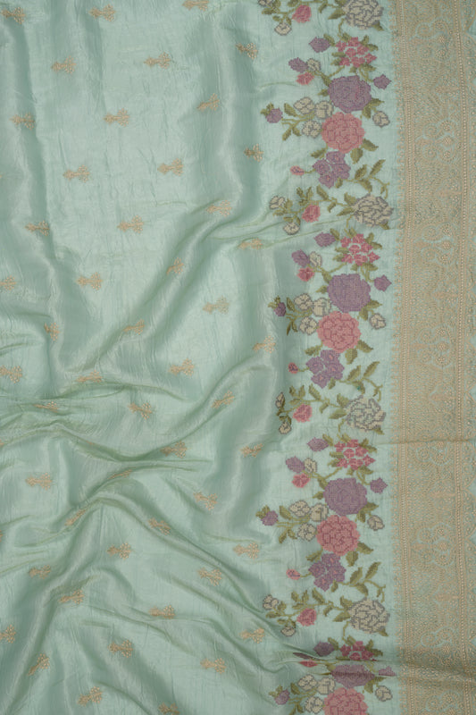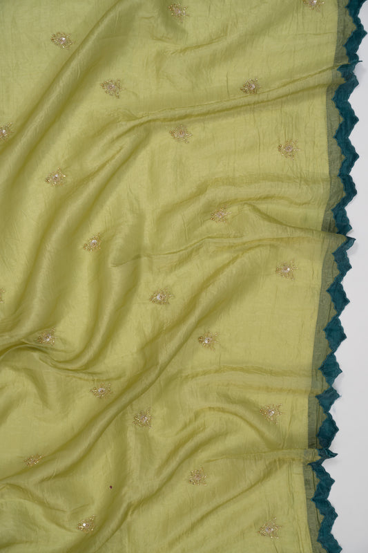 Sunshine Yellow Embroidered Crush Tissue Saree
