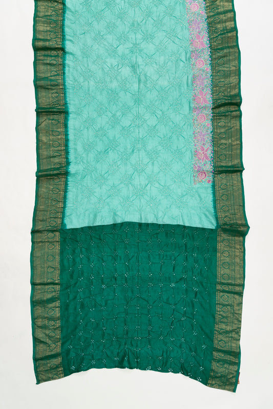 Tiffany Blue Kanchi Bandhini Saree With Embroidery