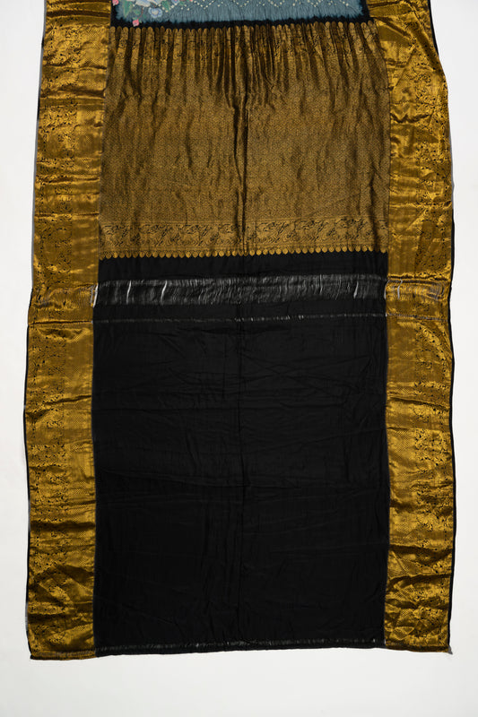 Grey And Black Kanchi Bandhini Saree With Embroidery