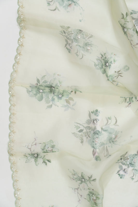Pale Pista Green Printed Organza Saree
