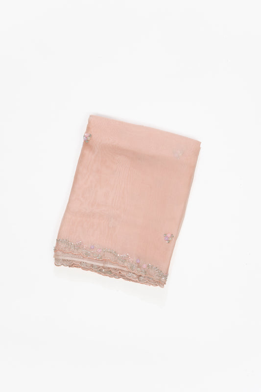 Soft Peach Embroidery Organza Saree