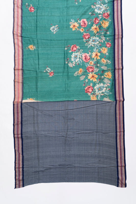 Pine Green And Blue Printed Tussar Silk Saree